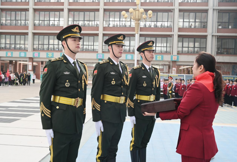 隨後,國旗班戰士莊嚴(yan) 地將天安門國旗授予範縣第三小學。學校黨(dang) 支部書(shu) 記、校長白秀娟鄭重接旗並表示,傳(chuan) 遞時代接力棒,未來的範縣第三小學定將傳(chuan) 承愛國情懷、堅定報國之誌,培養(yang) 更多的新時代好少年!