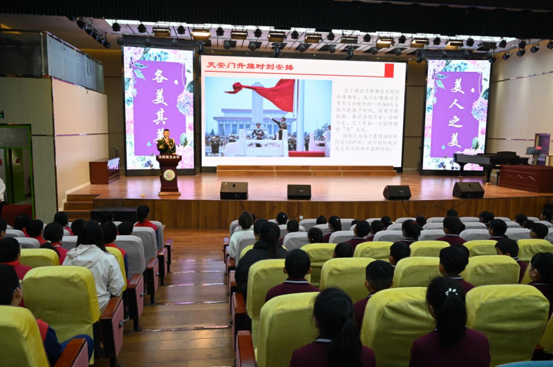 最後,國旗班戰士為(wei) 同學們(men) 講述了國旗的來曆、三軍(jun) 儀(yi) 仗隊戰士選拔過程,以及訓練過程中所付出的艱辛和努力,進一步增強了同學們(men) 自覺維護國旗尊嚴(yan) 的意識。
