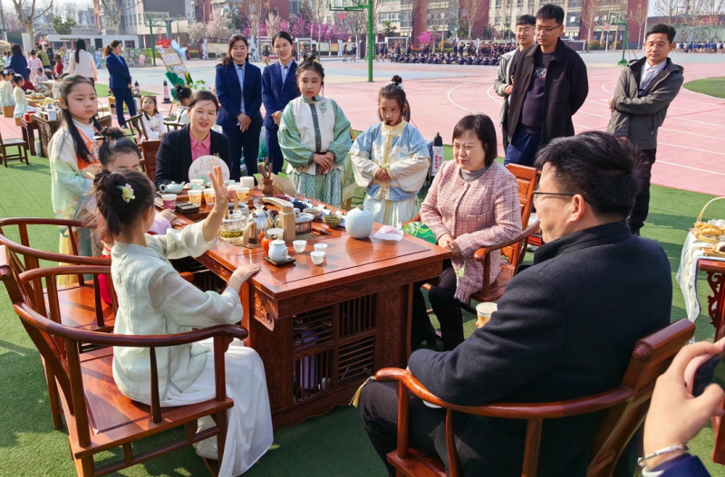 為(wei) 深入貫徹落實國家“雙減”政策,促進“五育”融合,深化校本課程,推進學校特色教育發展,增強學生對傳(chuan) 統文化的了解與(yu) 熱愛,3月26至27日,輝縣市文昌小學開展“童眼聚焦•鑒茶”校園微展活動,市教體(ti) 局領導郭東(dong) 芳、焦建鵬、郎福紅帶領市局部分科室同誌出席活動,師生及家長代表6000多人參加了活動。