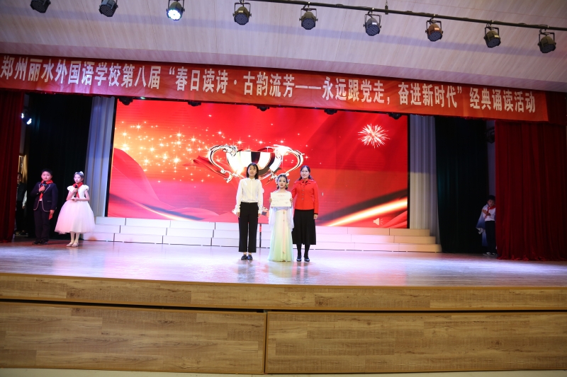 評委們(men) 根據誦讀內(nei) 容、語言表達、情感傳(chuan) 達等方麵對八個(ge) 班級進行了綜合評分,並最終評選出特等獎、一等獎和二等獎。金水區教育局和鄭州麗(li) 水外國語學校的相關(guan) 領導為(wei) 獲獎班級頒獎。