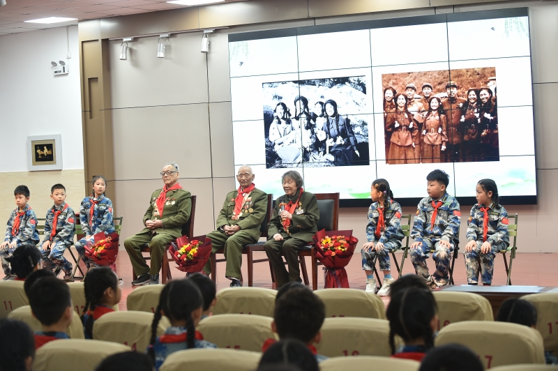升旗儀(yi) 式結束後,隊員們(men) 一起聆聽了抗戰老兵毛甲申、柳嶽繼、王果講授的“緬懷先烈,致敬英雄”主題隊課,隊員們(men) 展示了兵娃娃尋英烈、兵娃娃愛國防、兵娃娃學科普、兵娃娃愛勞動等社團風采,開展了特種兵、戰地小軍(jun) 醫、消防員等國防教育體(ti) 驗活動。