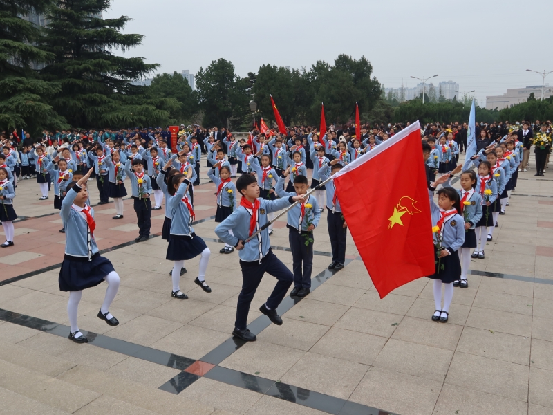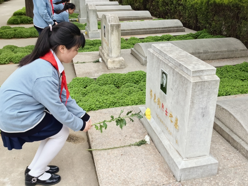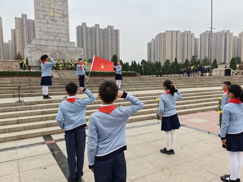 在校外,各學校少先隊大隊、中隊開展多種形式的緬懷英烈活動。隊員們(men) 走進鄭州烈士陵園,向先烈紀念碑敬獻花籃、瞻仰烈士紀念碑,為(wei) 長眠於(yu) 此的英烈擦拭墓碑,表達對革命先烈的深切緬懷。在中原英烈館,紅領巾講解員向大家講述中原英烈的事跡,從(cong) 珍貴的革命文物到感人的曆史圖片,稚嫩的聲音飽含熱情,吸引每一位參觀者駐足聆聽。隊員們(men) 紛紛表示,通過此次活動,更加深刻地認識到自己肩上的責任使命,也更加堅定了他們(men) 傳(chuan) 承紅色血脈的決(jue) 心。