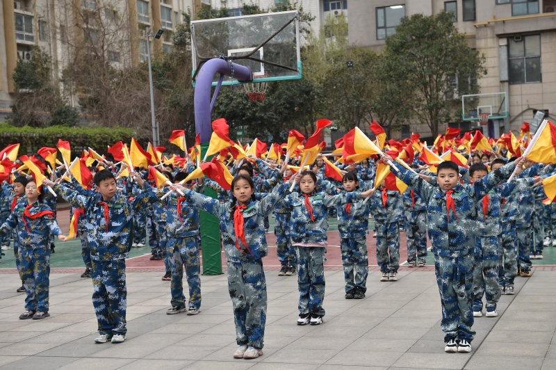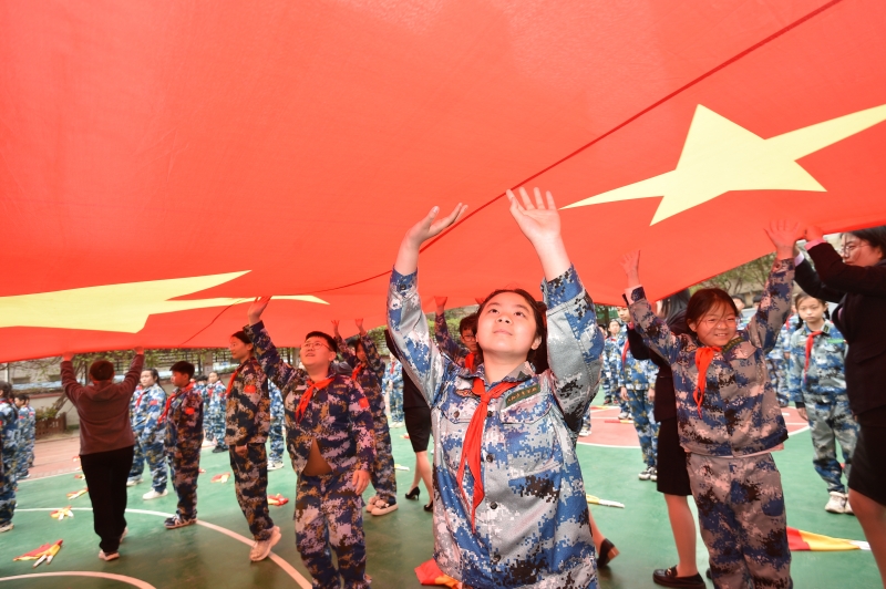 在校內(nei) ,隊員們(men) 舉(ju) 行莊嚴(yan) 而隆重的升旗儀(yi) 式。國旗護衛隊隊員們(men) 英姿颯爽,邁著鏗鏘有力的步伐,護衛著五星紅旗走向升旗台,全體(ti) 師生共唱國歌,向緩緩升起的國旗行禮。“隊員們(men) ,為(wei) 什麽(me) 說誌願軍(jun) 是最可愛的人,現在你們(men) 明白了嗎?”少先隊輔導員和少先隊員一同演繹國旗下微隊課——《和平的天空》,致敬誌願軍(jun) 戰士,緬懷革命先烈。隨後,全體(ti) 隊員展示少年軍(jun) 校特色活動——千人旗語操和軍(jun) 體(ti) 拳,旗語方陣隊列整齊劃一,軍(jun) 體(ti) 拳方陣出拳有力,彰顯出紅領巾少年軍(jun) 校少先隊員們(men) 蓬勃向上的精神風貌。儀(yi) 式中,與(yu) 會(hui) 領導共同為(wei) 學校英雄中隊授旗,團省委、省少工委成立河南省少先隊工作學會(hui) 少年軍(jun) 校專(zhuan) 委會(hui) ,聯合河南司法警官職業(ye) 學院啟動“百校百支國旗護衛隊”建設項目,鄭州市二七區人和路小學、鄭州市經開區八一小學等10所學校成為(wei) 首批新時代少年國旗護衛隊規範化建設試點學校。河南司法警官職業(ye) 學院將利用學校優(you) 勢,為(wei) 全省100所中小學校提供國旗護衛隊建設、國防知識教育等誌願服務,讓紅色基因、革命薪火代代傳(chuan) 承。儀(yi) 式最後,伴隨著《我和我的祖國》的旋律,巨幅國旗在黨(dang) 員教師的遞送中從(cong) 少先隊員頭頂緩緩拂過,隊員們(men) 紛紛表達著對五星紅旗的熱愛和自豪之情!