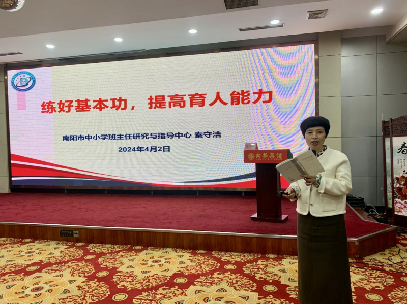 專(zhuan) 家點評環節,中原名班主任、南陽市班主任研究與(yu) 指導中心常務副主任、南陽市第十三中學校副校長秦守潔以《練好基本功,提高育人能力》為(wei) 題,結合展示環節中的亮點與(yu) 不足,圍繞班主任如何練就五項全能,促進班主任成長“破殼”,進行專(zhuan) 業(ye) 指導。南陽市班主任研究與(yu) 指導中心副主任吳景殿以《五項全能的優(you) 秀標準及二十五個(ge) 不等式》為(wei) 題,為(wei) 現場所有班主任帶來了一場精神的“點燃”、心靈的“點悟”、智慧的“點化”。