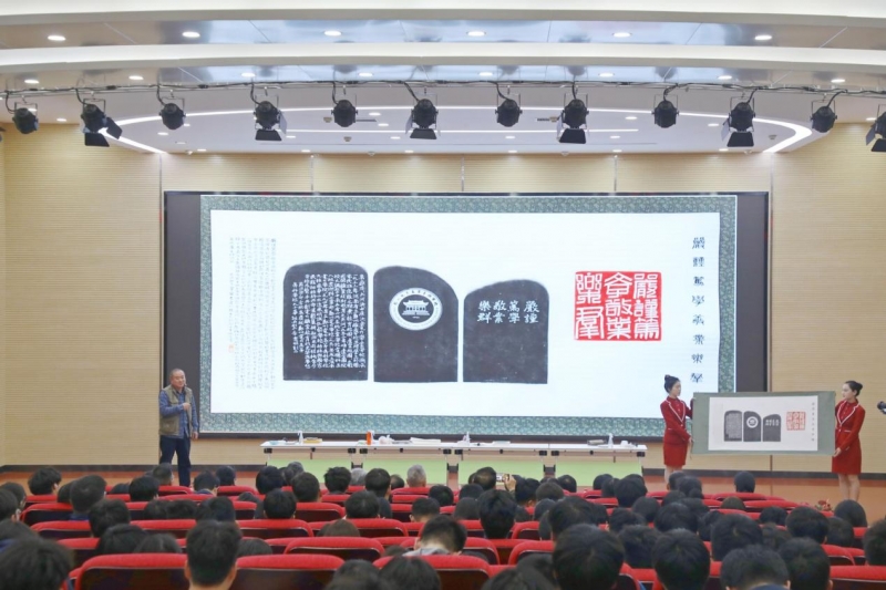 中國書(shu) 協會(hui) 員、河南省中國書(shu) 畫家協會(hui) 副主席韓湘人老師,以二十餘(yu) 年編著《王寵書(shu) 法全集》(四卷本),向師生宣講《王寵暨王寵書(shu) 法》。國家一級演員,河南省曲協副主席、曲藝牡丹獎表演獎獲得者王國軍(jun) 老師為(wei) 師生們(men) 表演了精彩的河南墜子藝術。中國書(shu) 協會(hui) 員、鄭州市金石文化研究會(hui) 首任執行會(hui) 長王秋人老師帶來了《中國金石傳(chuan) 拓藝術欣賞》並現場演繹、教學。