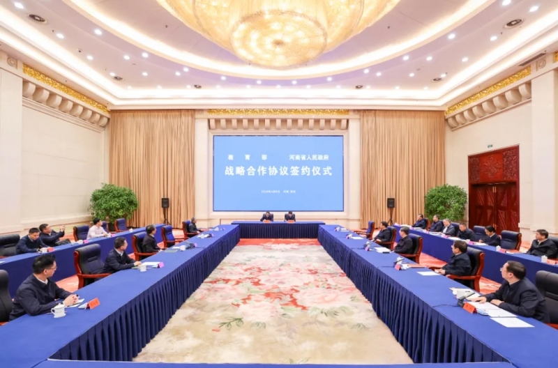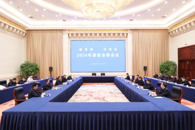 4月8日,教育部、河南省在鄭州舉(ju) 行部省會(hui) 商會(hui) 議,深入貫徹落實習(xi) 近平總書(shu) 記對中部地區崛起和河南改革發展的重要指示批示,助力河南在中部地區崛起中奮勇爭(zheng) 先、譜寫(xie) 新時代更加出彩的中原篇章。教育部黨(dang) 組書(shu) 記、部長懷進鵬,河南省委書(shu) 記、省人大常委會(hui) 主任樓陽生出席會(hui) 議並講話,河南省委副書(shu) 記、省長王凱出席會(hui) 議。教育部黨(dang) 組成員、副部長王光彥,河南省委常委、秘書(shu) 長陳星,省委常委、組織部部長王剛,副省長宋爭(zheng) 輝出席會(hui) 議。王光彥、宋爭(zheng) 輝代表雙方簽署戰略合作協議。