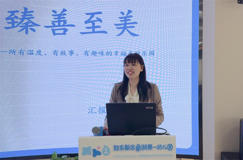 秦雪以“溫潤而澤 臻善至美”為(wei) 題,重點圍繞幼兒(er) 園辦園條件的保障性、師資隊伍的專(zhuan) 業(ye) 性、“3511”潤澤課程的前瞻性、園所成績的豐(feng) 碩性,以及未來發展的目標性等方麵做了詳細匯報。