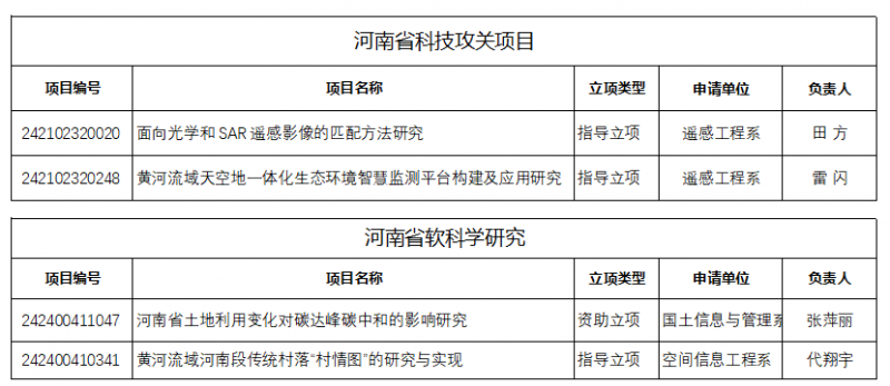 近日,河南省科技廳公布了《關(guan) 於(yu) 下達河南省二〇二四年科技發展計劃的通知》(豫科〔2024〕42號),河南測繪職業(ye) 學院共有2項科技攻關(guan) 項目和2項軟科學項目獲批立項,這是該校在河南省科技攻關(guan) 項目上首次成功立項,其中張萍麗(li) 老師主持申報的河南省軟科學研究項目“河南省土地利用變化對碳達峰碳中和的影響研究”喜獲資助立項,再次刷新學校河南省科技發展計劃立項數量記錄。