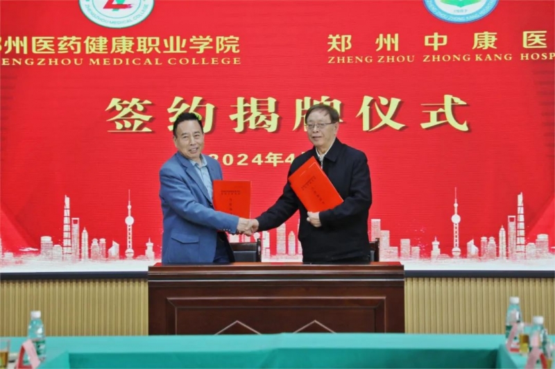 為(wei) 加強醫校合作,實現學校“雙百工程”目標。4月10日,鄭州醫藥健康職業(ye) 學院附屬醫院簽約揭牌儀(yi) 式舉(ju) 行。鄭州中康醫院董事長嶽建華,總裁翟紹雪,工會(hui) 主席兼財務總監楚雲(yun) 鵬,醫務科科長周海軍(jun) ,護理部主任李冰,辦公室主任張璐,我校黨(dang) 委副書(shu) 記、校長苗相甫,副校長張健及雙方相關(guan) 部門工作人員出席此次活動。儀(yi) 式由鄭州中康醫院黨(dang) 支部書(shu) 記黃會(hui) 娟主持。