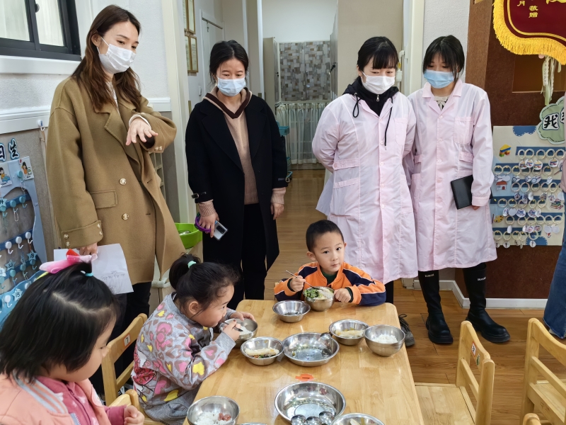 在進餐環節中,餐前孩子們(men) 首先跟隨教師進行有趣的遊戲活動,保育老師為(wei) 孩子們(men) 介紹美食名稱,接著,孩子們(men) 分組做好進餐準備,如廁洗手後開始進餐。進餐時,孩子們(men) 能細嚼慢咽、保持安靜,教師來回巡視不時為(wei) 有需要的孩子們(men) 添餐。從(cong) 飲水、進餐、盥洗等活動中,既能看到孩子們(men) 良好習(xi) 慣的養(yang) 成和優(you) 秀品質的培養(yang) ,更能看出教師們(men) 組織日常活動的用心程度。