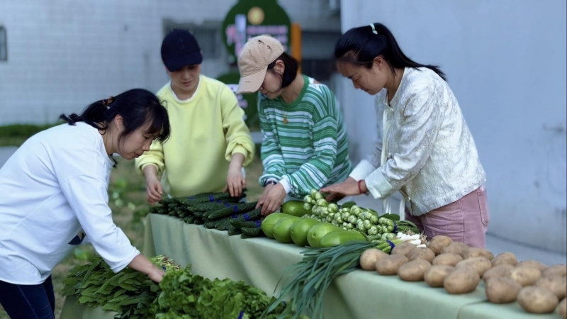 小菜園裏孩子們(men) 參與(yu) 種植的生菜、菠菜、香菜、蒜苗已成熟,後勤老師們(men) 摘菜、撿菜、捆綁,認真細致。加上孩子們(men) 日常吃到的土豆、黃瓜、西葫蘆、洋蔥等,整齊地擺放在前廳。