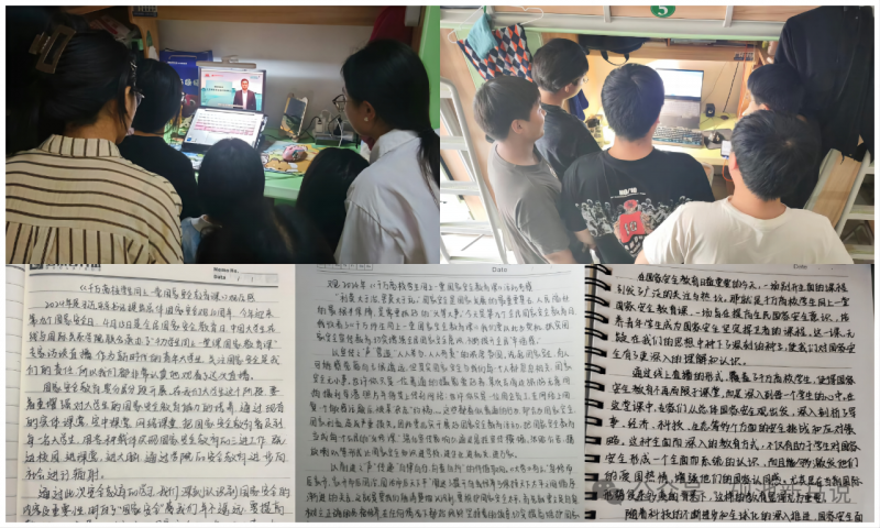 4月14日,國防教育教研室利用軍(jun) 事理論課線上教學平台,組織學生通過中國大學生在線官網及中國大學生在線視頻號、微博、快手、B站等直播平台,觀看“千萬(wan) 師生同上一堂國家安全教育課”主題公開課。《千萬(wan) 高校學生同上一堂國家安全教育課》是在教育部思想政治工作司指導下,中國大學生在線和全國思政政治教育工作網麵向全國高校學生推出的線上直播課,此次直播課程由北京師範大學教授汪明,上海財經大學教授曹嘯,國防科技大學副教授趙雲(yun) 聯合講授。通過觀看直播,同學們(men) 對國家安全及其重要性有了充分認知。課後,同學們(men) 圍繞國家安全進行分組討論並撰寫(xie) 了學習(xi) 心得。