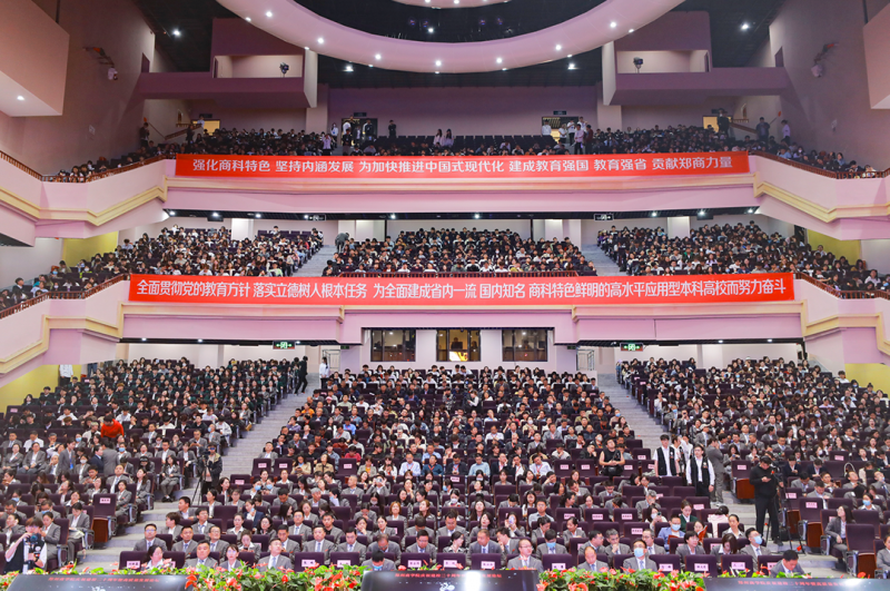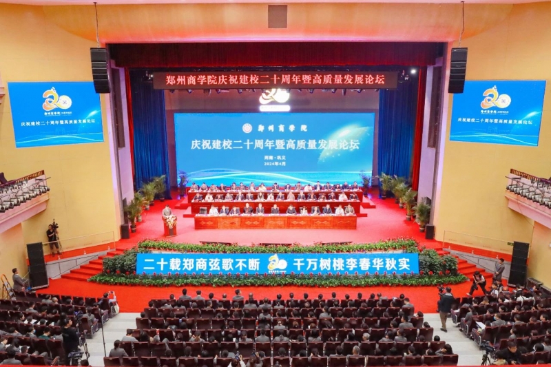 憶往昔勤耕不輟,展未來芳華正茂。慶祝建校20周年暨高質量發展論壇既是學校總結成績、彰顯內(nei) 涵的新機遇,也是承前啟後、繼往開來的新起點,更是砥礪初心、凝聚合力的新契機。跨越第一個(ge) 二十年,鄭商人備受鼓舞、信心滿懷;麵向下一個(ge) 二十年,鄭商人意氣風發、鬥誌昂揚。鄭州商學院將以此次大會(hui) 為(wei) 契機,堅持以習(xi) 近平新時代中國特色社會(hui) 主義(yi) 思想為(wei) 指導,全麵落實立德樹人根本任務,為(wei) 黨(dang) 育人、為(wei) 國育才,凝心聚力、接續奮鬥,為(wei) 建設教育強國、教育強省貢獻新的更大的力量。