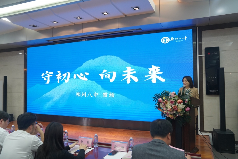 隨後,鄭州八中副校長雷煬為(wei) 參培學員作了題為(wei) 《守初心 向未來》的主題報告,她從(cong) 學校辦學曆史出發,借助一個(ge) 個(ge) 鮮活生動的真實案例,梳理了鄭州八中建校70餘(yu) 年來篳路藍縷、薪火相傳(chuan) 、開拓創新的教育教學發展之路,詳細闡釋了學校以環境文化潤根、傳(chuan) 統文化固根、課堂文化育根、課程文化養(yang) 根、三元合力護根的五位一體(ti) 的“根文化”教育思想。