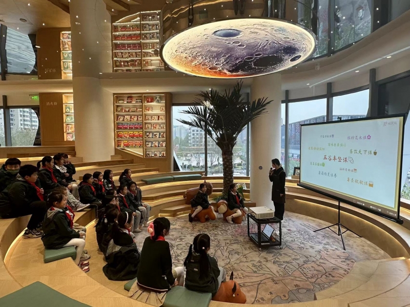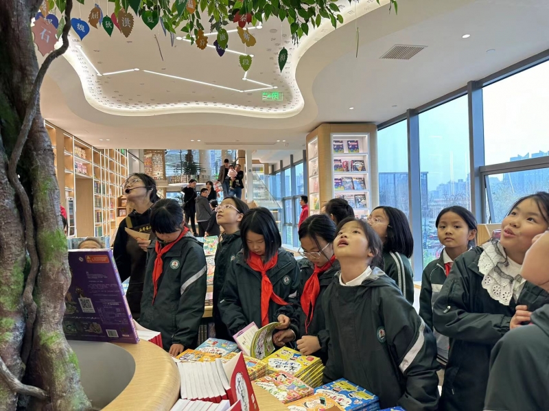 近日,鄭州市農(nong) 科路小學的孩子們(men) 在老師的帶領下,來到了新華書(shu) 店圖書(shu) 館,開展了一場主題為(wei) “拾趣圖書(shu) 館 延時新課堂”的閱讀活動。探尋優(you) 質社會(hui) 資源,打造“學校+書(shu) 店”課後延時服務新模式,多維度營造書(shu) 香氛圍,引導學生“愛生活、樂(le) 閱讀”。