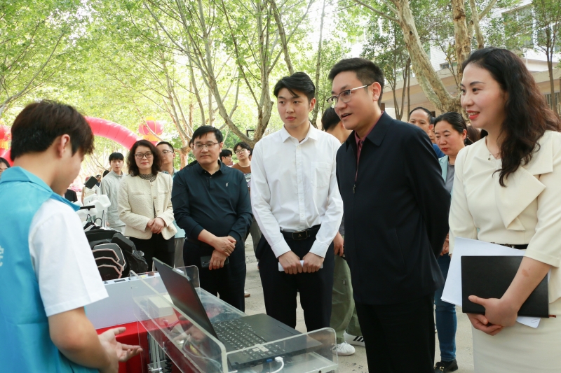 在課外學術科技作品展示區,11個(ge) 二級學院結合自身學科、專(zhuan) 業(ye) 特色,充分挖掘學生創業(ye) 計劃優(you) 秀成果,集中展示“挑戰杯”優(you) 秀作品40餘(yu) 件。參賽者以生動、直觀的方式闡述了項目的產(chan) 品特點、技術原理、市場定位以及商業(ye) 模式等關(guan) 鍵信息,以便師生更深入地了解項目的實際應用效果和潛在價(jia) 值,通過現場反饋,為(wei) 項目的後續發展提供參考。