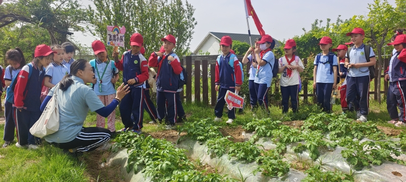一到農(nong) 業(ye) 基地,同學們(men) 的臉上彰顯著抑製不住地興(xing) 奮與(yu) 開心!在這裏,一花一草皆教育,一事一物皆教材,他們(men) 盡情探索與(yu) 實踐:用手去觸摸,用眼去觀察……踏足在綠意盎然的六大科普場館,同學們(men) 紛紛化身為(wei) 一個(ge) 個(ge) 勤學好問的小農(nong) 夫,認真識記著各種蔬菜的名稱,了解各種植物的生長要素;了解了古代農(nong) 耕文化和各式農(nong) 具、認識了小麥、玉米、高粱等常見農(nong) 作物、從(cong) 而懂得“珍惜糧食”的重要意義(yi) ;爭(zheng) 奇鬥豔的各種花卉、妙不可言的中醫藥文化、香甜四溢的果實、“南果北種”的科技培育方式,還有穿梭於(yu) 油菜花田的同學們(men) ,看老師演示抽蒜薹、拔蘿卜,收獲滿滿。