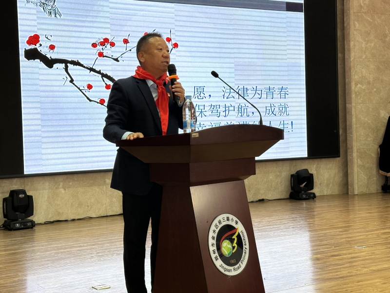 最後,金水區經三路小學黨(dang) 總支書(shu) 記張仁傑發表講話,他希望同學們(men) 敬畏法律、敬畏生命,做一個(ge) 學法、懂法、守法的好公民。用法律擦亮眼睛,規範行動,用法律為(wei) 青春護航!