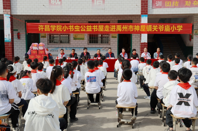 4月18日下午,在第29個(ge) “世界讀書(shu) 日”來臨(lin) 之際,許昌學院小書(shu) 蟲公益書(shu) 屋來到禹州市神垕鎮關(guan) 爺廟小學開展捐贈活動。許昌學院黨(dang) 委副書(shu) 記孫海,禹州市委常委、宣傳(chuan) 部部長、副市長馬利出席捐贈儀(yi) 式。許昌學院黨(dang) 委宣傳(chuan) 部(新聞中心)、校團委等單位負責人,禹州市神垕鎮有關(guan) 負責人,許昌學院及關(guan) 爺廟小學部分師生代表等參加儀(yi) 式。儀(yi) 式由禹州市神垕鎮鎮長王闖主持。
