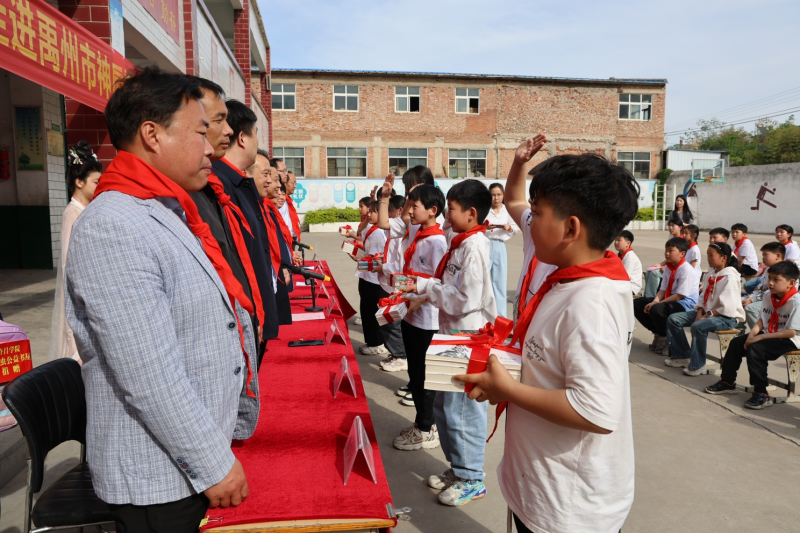 儀(yi) 式上,與(yu) 會(hui) 領導共同為(wei) 學生代表發放了贈書(shu) 及學習(xi) 用品。