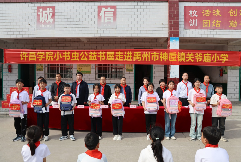 據悉,許昌學院小書(shu) 蟲公益書(shu) 屋成立於(yu) 2013年3月,由學校黨(dang) 委宣傳(chuan) 部指導,學校廣播電台師生負責具體(ti) 運營,其主旨是推廣終身閱讀理念,並幫助貧困地區學校建設圖書(shu) 室。書(shu) 屋成立10餘(yu) 年來,積極在校內(nei) 外募集圖書(shu) 、愛心捐款,累計在河南禹州、西藏自治區洛隆縣等地捐建公益書(shu) 屋12個(ge) ,捐贈圖書(shu) 總量6000餘(yu) 冊(ce) 。相關(guan) 活動先後被新華網、中國文明網、中國教育報、中國青年報等多家主流媒體(ti) 宣傳(chuan) 報道,取得了良好的社會(hui) 反響。關(guan) 爺廟小學是該組織捐建的第13個(ge) 公益書(shu) 屋,本次活動共捐贈圖書(shu) 400餘(yu) 冊(ce) ,書(shu) 包及學習(xi) 文具20套。