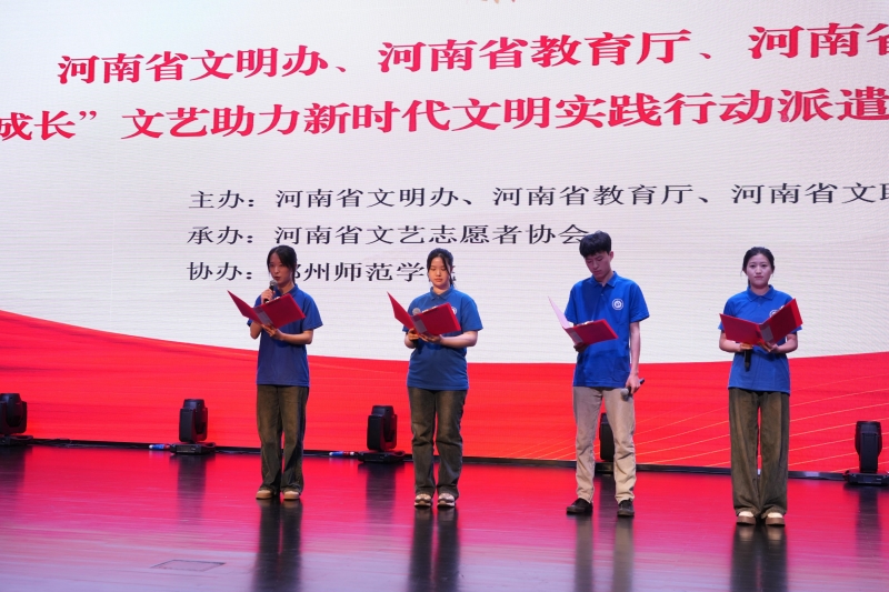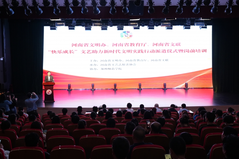 點亮七彩夢想,激揚青春力量。4月22日,由省文明辦、省教育廳、省文聯主辦的2024年上半年“快樂(le) 成長”文藝助力新時代文明實踐行動派遣儀(yi) 式暨崗前培訓在鄭州師範學院舉(ju) 行。該校和來自鄭州大學、河南大學等11所高校的88名文藝誌願者,經過崗前培訓後,將被分別派遣到全省13個(ge) 縣(市)的48所鄉(xiang) 村中小學校,開展為(wei) 期三個(ge) 月的文藝支教工作。本期鄭州師範學院共從(cong) 音樂(le) 與(yu) 舞蹈學院和體(ti) 育學院選拔了6名優(you) 秀誌願者,將前往許昌市襄城縣開展支教。