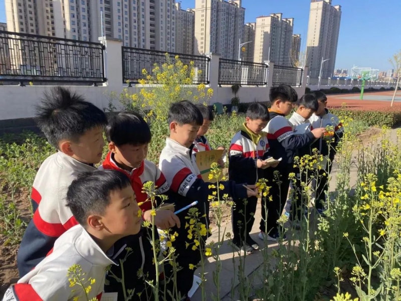 近日,春光明媚,獲嘉縣凱旋路小學組織學生在校園尋訪春天,跟隨老師一起探尋一花一草的美好。這是該校開設的四季課程的生動場景。
