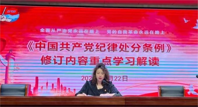 王立康指出,全體(ti) 黨(dang) 員教師要把學習(xi) 貫徹《中國共產(chan) 黨(dang) 紀律處分條例》作為(wei) 當前重要政治任務,認真學習(xi) 領會(hui) 條例精神,以嚴(yan) 明的紀律推進黨(dang) 的自我革命,不斷提升自身的政治素養(yang) 和拒腐防變能力,使廉潔自律規範內(nei) 化於(yu) 心、外化於(yu) 行,不斷堅定理想信念,增強宗旨意識,嚴(yan) 格遵守法律法規,守住紀律“底線”、不越“紅線”,切實以學紀、知紀、明紀、守紀的優(you) 良紀律作風保障學校教育教學高質量發展。