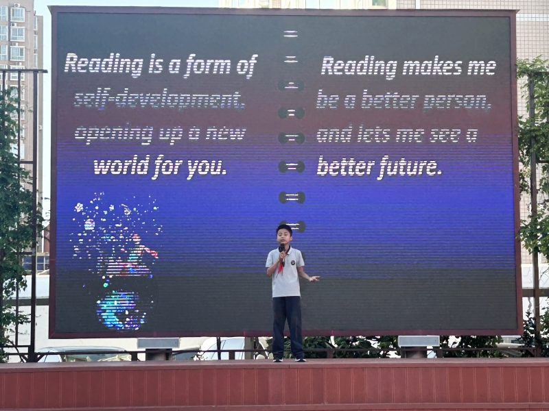 “美,潤於(yu) 心”書(shu) 香幽幽培育芸芸眾(zhong) 生,朱書(shu) 冉、範旭峰、陳瀟婷同學分享了語文讀書(shu) 不僅(jin) 要獲取知識,還要掌握方法,實現“魚”與(yu) “漁”的兼得;陳子琦和王培昊同學用全英口語分享了閱讀的重要性,倡議大家用心去感受書(shu) 中的世界;王皓、劉儒範和邵姿淇同學分享了通過課本、時政和活動來閱讀道法,實現自我成長的方式;張寶印和牛樂(le) 泉同學則分享了通過閱讀曆史課本和課外讀物來建立曆史知識框架、掌握曆史發展脈絡的經驗。隨後,英語學科組長彭晨老師進行了點評,肯定了他們(men) 的閱讀感悟和讀書(shu) 之旅中的收獲,強調認識語文的博大精深,英文讀後感對於(yu) 理解原版故事的重要性,道法閱讀對於(yu) 個(ge) 人成長的幫助,以及曆史閱讀對於(yu) 積累曆史知識和觸摸曆史脈搏的意義(yi) 。