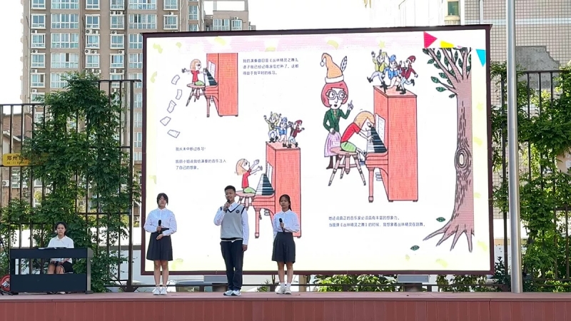“健,蘊於(yu) 恒”用生活的感悟讀書(shu) ,用讀書(shu) 的感悟生活,趙泓宇、徐若熙、劉夢琪和王琳琳同學在音樂(le) 中告訴我們(men) 想象在演奏中的重要性;單詩雅、劉瞳瞳、徐夢媛、曹雨陽、張振祺、溫子爍同學則通過美術書(shu) 法展示帶領大家感受藝術的詩意和空靈之美;姚紫涵、李瑞瑜和呂一笑同學分享了他們(men) 在綜合實踐課程中的體(ti) 驗,鼓勵大家細心觀察生活,用創新的眼光看待問題;楊宇輝、白若熙、呂宏博、查家樂(le) 、李冰涵同學在心理學科讀書(shu) 分享中告訴大家每個(ge) 人都能通過自己的行動讓世界變得更美好;李筱雨和紀孜衡同學在體(ti) 育學科讀書(shu) 分享中,以鄧亞(ya) 萍為(wei) 例,鼓勵大家勇往直前,超越自我。隨後,音美學科組長賈婷婷老師在點評中強調了這些學科對同學們(men) 的影響和啟發,相信通過不斷讀書(shu) 學習(xi) ,同學們(men) 不僅(jin) 能收獲知識,更能豐(feng) 富精神家園。