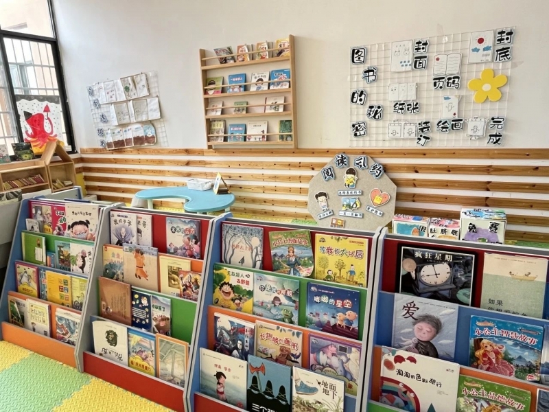 布置圖書(shu) 角。與(yu) 書(shu) 相伴,與(yu) 書(shu) 為(wei) 友。在園區的各個(ge) 角落,老師們(men) 精心布置圖書(shu) 角,同時用心傾(qing) 聽孩子們(men) 的想法,引導參與(yu) 一起布置,讓濃鬱的書(shu) 香充盈在每一個(ge) 角落。
