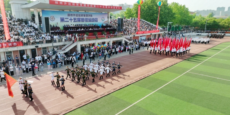 最後,王新奇宣布:“鄭州升達經貿管理學院第二十五屆田徑運動會(hui) 開幕”,為(wei) 期兩(liang) 天的體(ti) 育盛會(hui) 拉開了帷幕。
