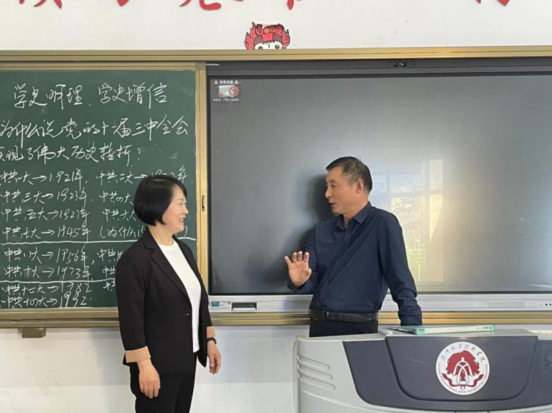 調研組分兩(liang) 組通過隨機抽取、推門聽課的方式深入思政課堂,分別完整聽取了李迎安老師講授的《中國共產(chan) 黨(dang) 簡史》課程和陳紅莉老師講授的《毛澤東(dong) 思想和中國特色社會(hui) 主義(yi) 理論體(ti) 係概論》課程。