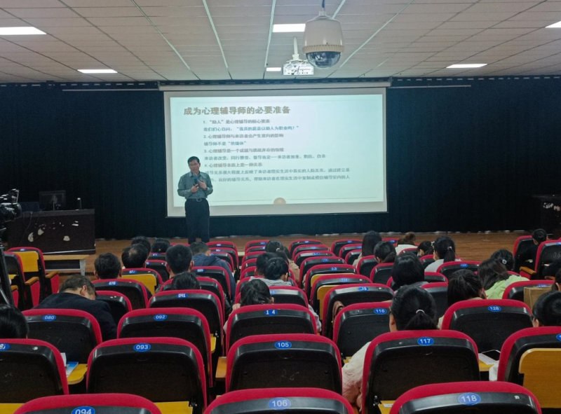 為(wei) 進一步加強全縣心理健康教師隊伍建設,不斷提升學校專(zhuan) 兼職心理健康教師的專(zhuan) 業(ye) 化水平,為(wei) 學生健康成長保駕護航,4月29日下午,修武縣教體(ti) 局在教育培訓中心舉(ju) 行了“心理健康教育教師專(zhuan) 業(ye) 化成長”專(zhuan) 題培訓活動,全縣專(zhuan) 兼職心理健康教師130餘(yu) 人參加了培訓活動。