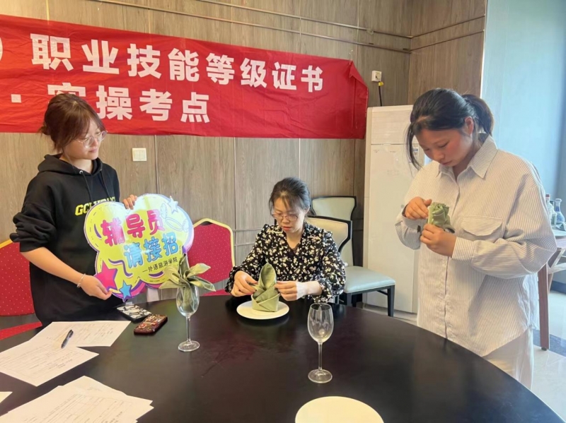 在“輔導員請接招”活動中,學生們(men) 根據自己的興(xing) 趣和特長,自主選擇一項技能向輔導員發起挑戰。從(cong) 舞蹈的優(you) 雅演繹到書(shu) 法的挑戰,從(cong) 運動場上的體(ti) 能角逐到精彩的專(zhuan) 業(ye) 課技能-餐巾疊花的比拚,再到英語趣配音的深情朗誦,學生們(men) 挑選的豐(feng) 富又有趣。輔導員們(men) 則以深厚的學識和豐(feng) 富的經驗,接受學生的挑戰,帶領學生在汗水中感受集體(ti) 的力量,在輕鬆愉悅的氛圍中提升專(zhuan) 業(ye) 技能。