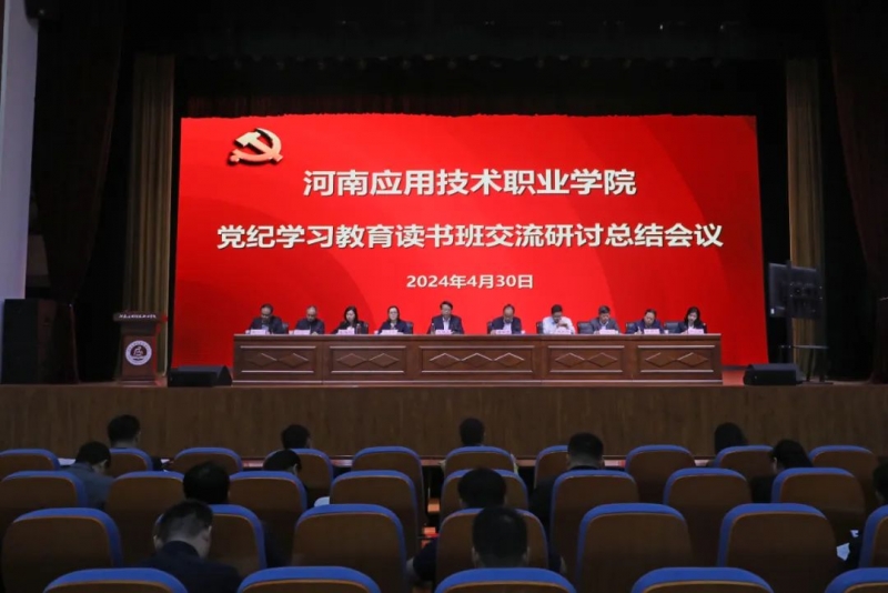 4月30日下午,河南應用技術職業(ye) 學院在學生活動中心舉(ju) 辦黨(dang) 紀學習(xi) 教育讀書(shu) 班交流研討總結會(hui) ,進一步深入學習(xi) 貫徹《中國共產(chan) 黨(dang) 紀律處分條例》(以下簡稱《條例》),交流研討心得體(ti) 會(hui) ,推動《條例》學習(xi) 走深走實。黨(dang) 委書(shu) 記閆俊山作結班講話。全體(ti) 黨(dang) 委委員、中層以上幹部參會(hui) 。會(hui) 議由黨(dang) 委副書(shu) 記、校長薄新黨(dang) 主持。