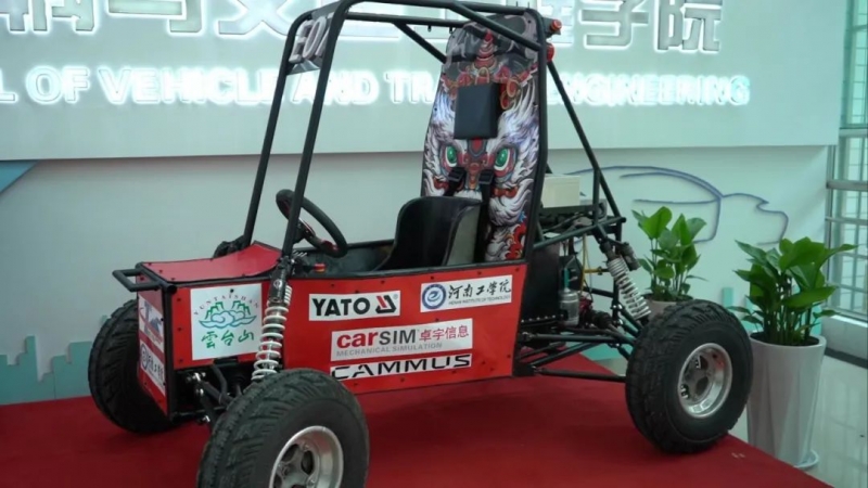 車隊隊長蔣保龍對E07介紹:賽車設計思路:我們(men) 設計的巴哈賽車“E07”長為(wei) 2158mm,寬1497mm,高1620mm,它的電機最大輸出功率能達到8KW,電池續航能力強而且整輛車輕量化且具有高效能。然後我們(men) 的產(chan) 品外觀結合了中國傳(chuan) 統文化“舞獅”,用其圖樣進行噴繪,不僅(jin) 寓意著這給我們(men) 團隊帶來力量的,同時更象征著喜慶和吉祥。