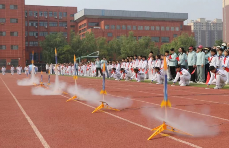 劉述榮宣布活動開幕。10枚小火箭齊發,孩子們(men) 的歡呼聲和火箭一起直衝(chong) 雲(yun) 霄。騰飛的火箭承載著他們(men) 科技創新的夢想飛向高空,象征著“金明學子”在老師們(men) 的指引嗬護下開拓進取、迎難而上、築夢遠航。