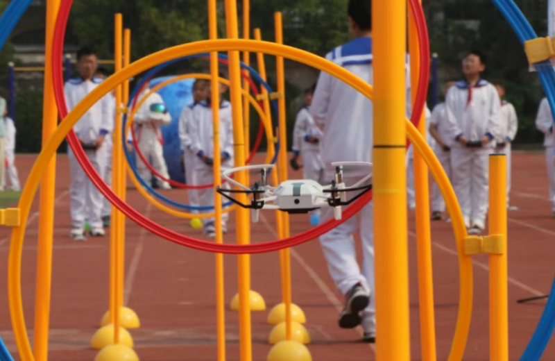 活動最後,當無人機懸掛著國旗和校旗在操場上空劃出美麗(li) 的弧線,全場師生無不為(wei) 之震撼,不由用歌聲向偉(wei) 大的祖國深情告白。紅旗飄揚、紅歌嘹亮,大家用歌聲禮讚祖國,用激情點燃心中的科技強國夢。