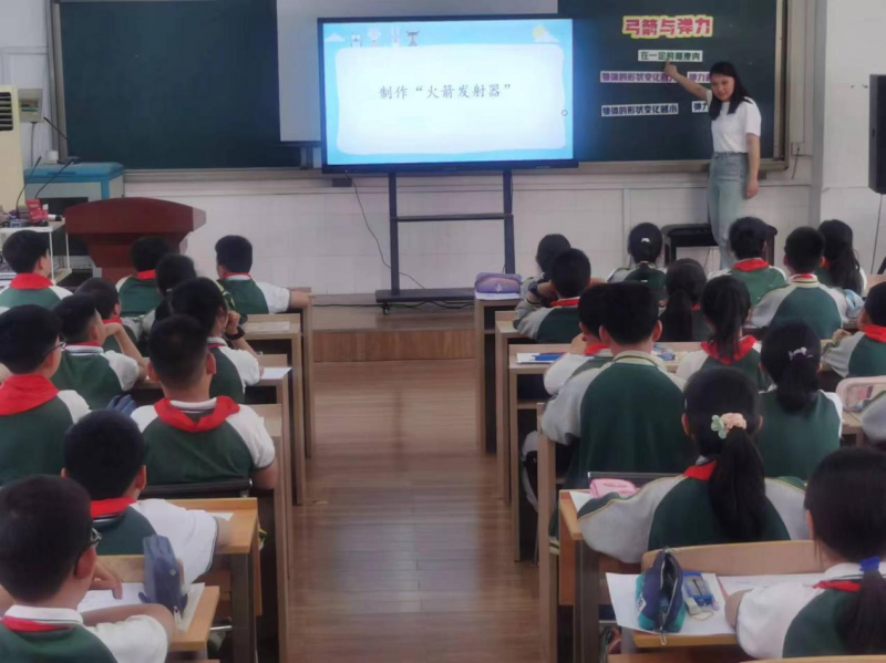 貴月老師帶來了第一節展示課《弓箭與(yu) 彈力》。貴月以弓箭為(wei) 切入點,引導學生分小組進行探究,並分別展示,旨在讓學生應用科學知識解決(jue) 問題,發現生活中處處有科學。