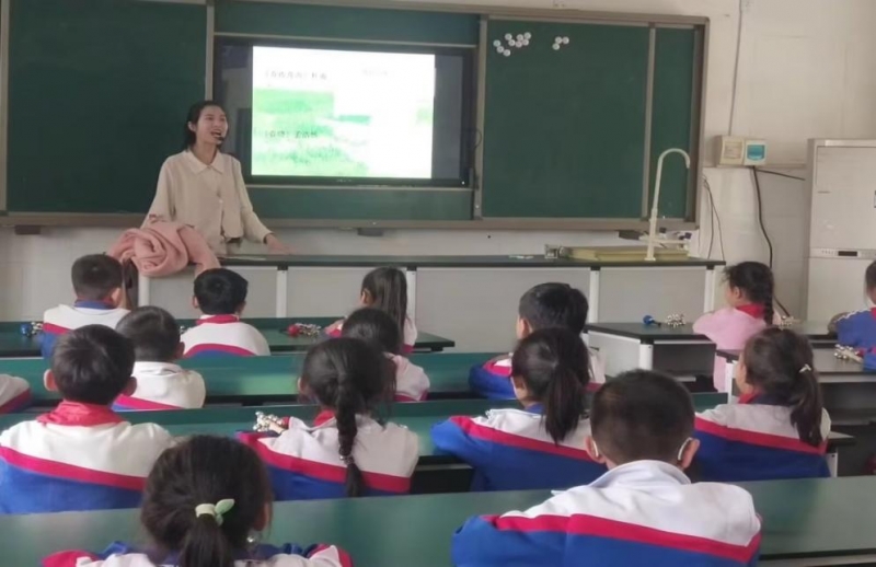郭菲菲老師為(wei) 一、二年級的孩子們(men) 帶來了一節唱歌課《小雨沙沙沙》。她親(qin) 切自然的教態、熱情鼓勵的話語、充滿童趣的示範,充分調動了孩子們(men) 渴望學習(xi) 音樂(le) 知識的激情。孩子們(men) 對郭老師帶來的串鈴、沙錘等課堂小樂(le) 器充滿了興(xing) 趣和好奇。