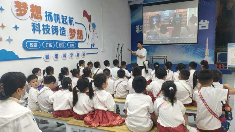 科創展廳,講解員帶領孩子們(men) 認識了各種各樣的科創成果展品,展示了搖控飛機飛上天、機器人躲障礙物等。孩子們(men) 被這些高科技產(chan) 品深深吸引,立誌長大後也要成為(wei) 科學家,用發明改變未來。