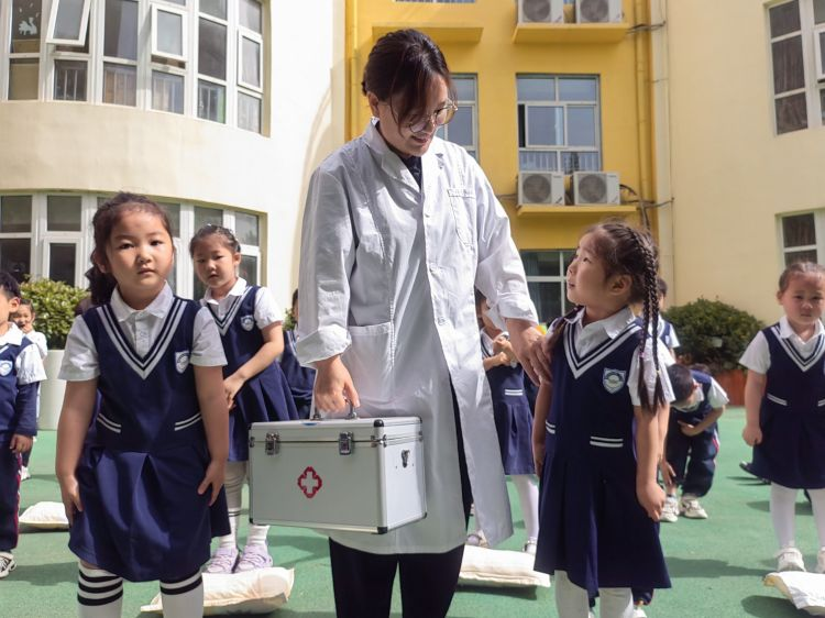 到達安全區域後,保健醫生查看班級幼兒(er) 情況,各班教師清點人數,向主管領導匯報班級幼兒(er) 人數,確保幼兒(er) 均已安全撤離到指定位置,沒有遺漏。
