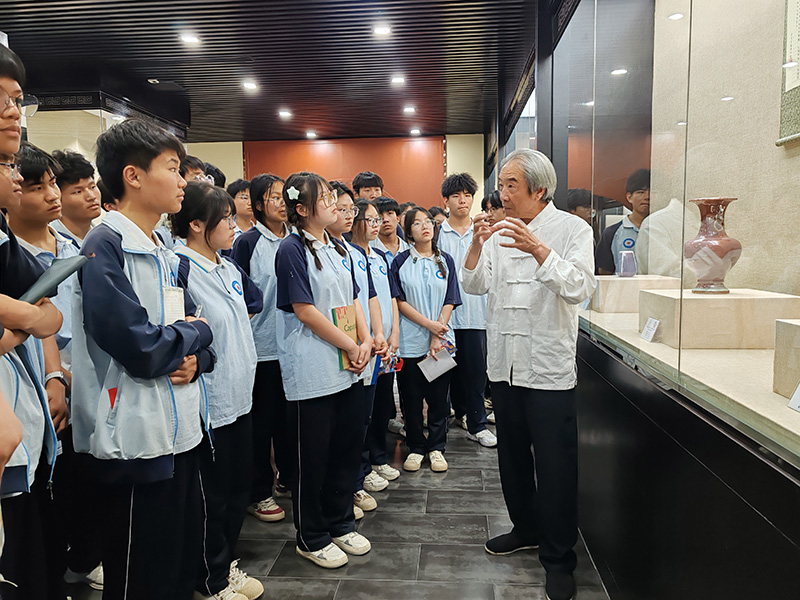 “鈞瓷始於(yu) 唐、盛於(yu) 宋,以其獨特的釉料及燒成方法產(chan) 生的窯變神奇而聞名於(yu) 世,也隻有禹州能夠燒製出出窯萬(wan) 彩、渾然天成的鈞瓷……”“近年來許多鈞瓷精品作為(wei) 國禮贈送給普京等各國政要,為(wei) 推進世界和平交流發揮重要作用……”5月13日,在禹州市星航鈞瓷燒製技藝傳(chuan) 習(xi) 館,國家級非物質文化遺產(chan) 項目鈞瓷燒製技藝代表性傳(chuan) 承人、中國工藝美術大師任星航結合館內(nei) 陳列的精美鈞瓷作品,為(wei) 在場師生講述起禹州的鈞瓷故事。