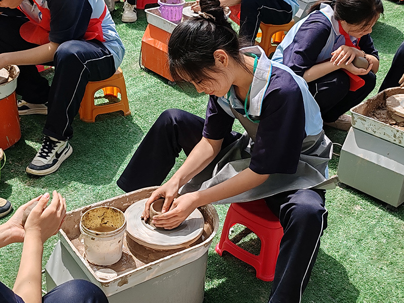 當日,禹州市三立高中200餘(yu) 名學生首先來到星航英歌鈞瓷藝術館。講解員白雲(yun) 鶴結合圖文並茂的課件,為(wei) 同學們(men) 上了一堂別開生麵的跨學科鈞瓷藝術研究課,並組織歡快有趣的互動小遊戲,讓學生們(men) 快速掌握鈞瓷的形、色及藝術特點。隨後,學生們(men) 在工作人員指導下,親(qin) 自體(ti) 驗了鈞瓷製造中的手拉坯環節。“原來地理和氣候也是鈞瓷得以在禹州市發展壯大的原因之一,真是‘漲知識’了。”該校高二(4)班學生程果在聽完講解後感慨到,“看著這些古樸渾厚的鈞瓷,我不由得想到遺留在大英博物館的上萬(wan) 件中國文物。希望隨著國家綜合國力的提升,越來越多的海外中華文物能夠回歸祖國!”