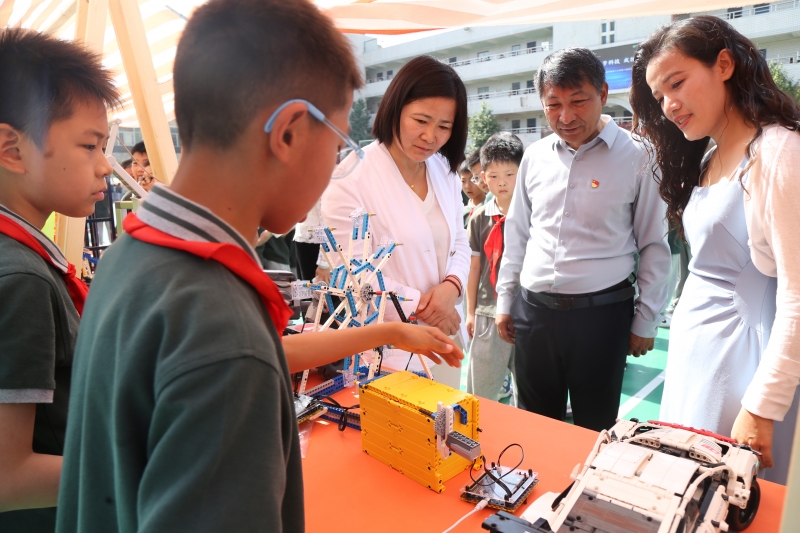 本屆活動有十幾個(ge) 項目,內(nei) 容豐(feng) 富、形式多樣。有精彩的科幻畫、非遺漆藝DIY和有趣的小發明創作、高科技的人工智能、各式各樣的體(ti) 驗操作活動,每個(ge) 科學項目都各具特色。嘉賓一行跟隨小講解員們(men) 熱情洋溢的講解,饒有興(xing) 趣地駐足在展品前,不僅(jin) 能夠親(qin) 眼看到,還能親(qin) 手操作,親(qin) 身體(ti) 驗。參觀的同學們(men) 熱烈討論著自己看到的科學現象,根據注釋認真研究其中的原理奧妙,在“試一試”“看一看”“想一想”中培養(yang) 了科學興(xing) 趣,汲取了科技知識,體(ti) 驗到了科技帶來的奧秘和快樂(le) 。
