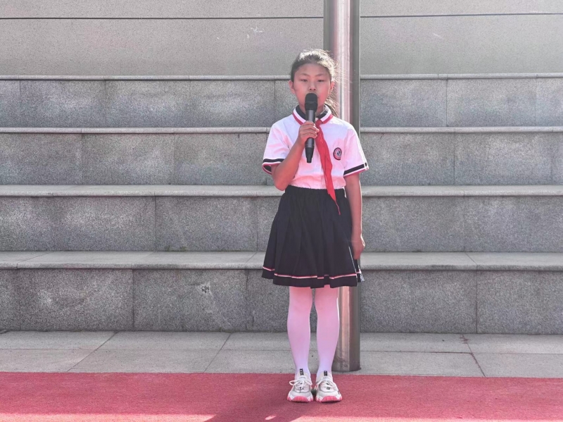 在升旗儀(yi) 式上,三二中隊的張琪同學發表了慷慨激昂的演講,她向全體(ti) 師生講述了交通安全對每個(ge) 人的重要性,並倡議大家在日常生活中要自覺遵守交通法規,文明出行。