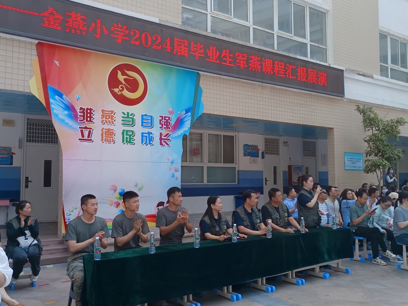 金燕小學黨(dang) 總支書(shu) 記宋璟闡述了開啟“軍(jun) 燕校本課程”的重要意義(yi) 。長期以來,金燕小學秉承“溫暖+磨礪”的教育思想,提出“雛燕當自強,立德促成長”的辦學理念。突出“立德”,強調“自強”。她說國是大的家,家是小的國。每位父母都希望自己的孩子摒除“驕嬌二氣”,每個(ge) 家庭都需要明禮知孝的“頂梁柱”;新時代需要的不是“溫室中的花朵”,而是具備堅強意誌品質和健康體(ti) 格的“民族脊梁”。李小輝校長對支持“軍(jun) 燕課程”的訓練教官、家長誌願者表示深深的謝意;王寧副校長全程主持了這次展演活動。