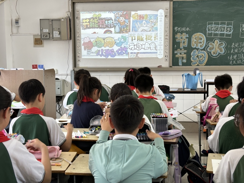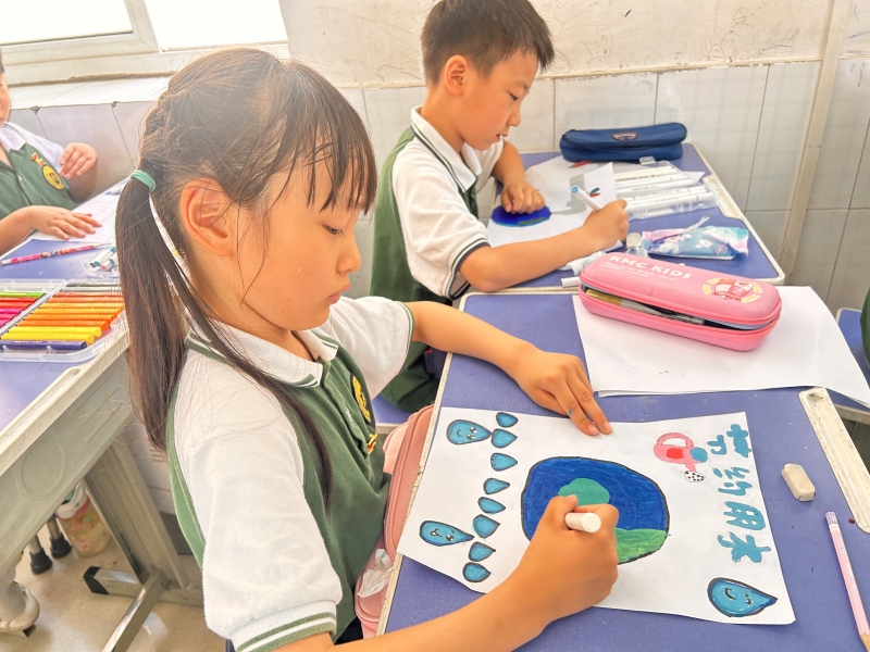 二、三、四年級學生圍繞主題,充分發揮想象力,在教師的啟發和引領下,將節約水資源的行動繪成一幅幅佳作。學生的繪畫作品圖文並茂、內(nei) 容豐(feng) 富、主題鮮明,一張張五彩繽紛、生動有趣的節水宣傳(chuan) 畫時刻提醒師生和家長珍惜用水、節約用水。