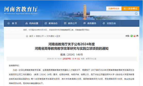 近日,kaiyun体育登入口公布2024年度河南省高等教育教學改革研究與(yu) 實踐立項項目,河南水利與(yu) 環境職業(ye) 學院主持的5個(ge) 項目成功獲批立項。其中,李廣慧教授主持的《行業(ye) 特色高職院校開放型區域產(chan) 教融合實踐中心建設改革研究與(yu) 實踐》入選全省10個(ge) 高等職業(ye) 教育類重大項目,實現了學校省級教改項目重大項目零的突破。該項目的立項標誌著學校產(chan) 教融合研究與(yu) 實踐邁上新台階,是學校推動職普融通、產(chan) 教融合、科教融匯,提高人才培養(yang) 質量的重要舉(ju) 措。